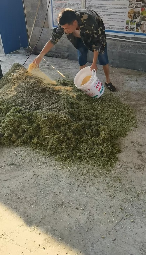 2.將“99多功能飼料發(fā)酵劑”1包與50公斤玉米粉2公斤食鹽混合,均勻撒入粉碎好的1噸牧草、甘蔗尾葉中簡單攪拌,將其裝入發(fā)酵桶或者青貯發(fā)酵袋中壓實密封,7-15天左右會散發(fā)出濃郁的酒香味或酸香味即可用于飼喂,發(fā)酵好的牧草、甘蔗尾葉飼料在陰涼、干燥處密封儲存可保存一年以上。