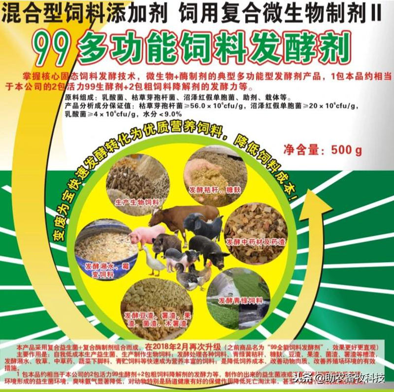 在粉碎牧草后,添加99多功能飼料發(fā)酵劑和玉米粉進(jìn)行發(fā)酵7-15天使用。
