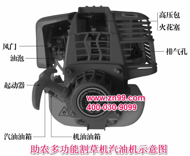 助農(nóng)多功能砍草機采用最新產(chǎn)的四沖程汽油機,跟普通轎車一樣機油和汽油分開加入兩個孔,不像二沖程每次加油都要先將汽油與機油按比例混合,稍有不對就問題來了。且助農(nóng)多功能砍草機汽油機器采用大功率極少維護型,功率大但省油。