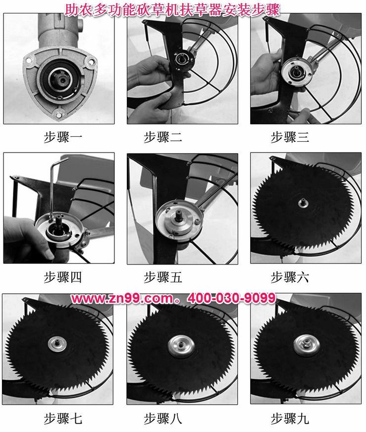 5.   鋸盤要根據(jù)不同的牧草等進行安裝不同的扶草器,2米以上一大團型的種莖牧草不建議使用扶草器,要拆下扶草器使用效率才更高。