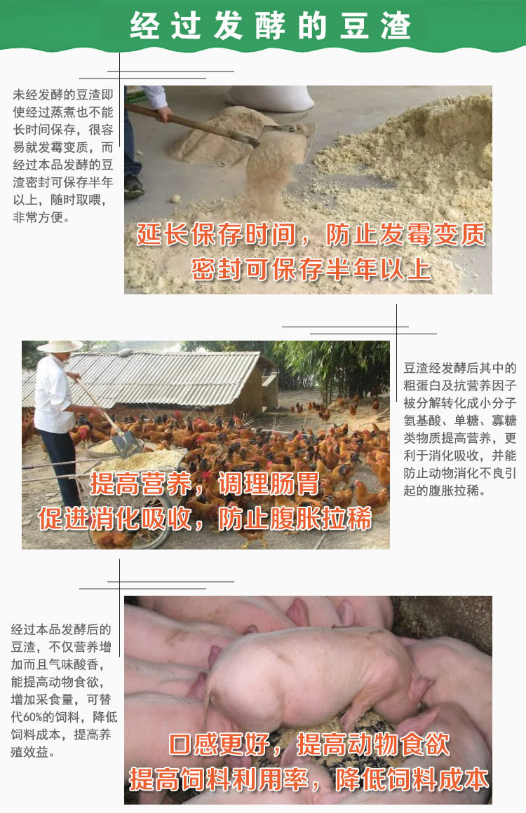值得一提的是,發(fā)酵飼料的應(yīng)用門檻低、適配性強,養(yǎng)殖戶可根據(jù)自身養(yǎng)殖規(guī)模和條件靈活選用。無論是采用 “99 多功能飼料發(fā)酵劑” 自制發(fā)酵豆渣、酒糟等原料,還是選擇發(fā)酵全價飼料、粕類發(fā)酵飼料等成品,只需按比例與常規(guī)飼料搭配使用即可見效。其原料來源廣泛,秸稈、牧草、食品工業(yè)副產(chǎn)物等均可利用,既降低了飼料成本,又實現(xiàn)了農(nóng)業(yè)廢棄物的資源化利用,契合綠色養(yǎng)殖的發(fā)展趨勢。