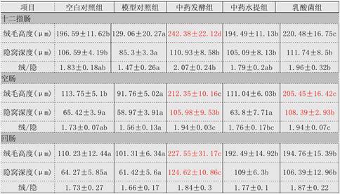 十二指腸、空腸,尤其是回腸的高度和深度均是中藥發(fā)酵組最好,乳酸菌組次之,總體而言,中藥組相對會差一些,這可能與它的定位有關(guān)系。