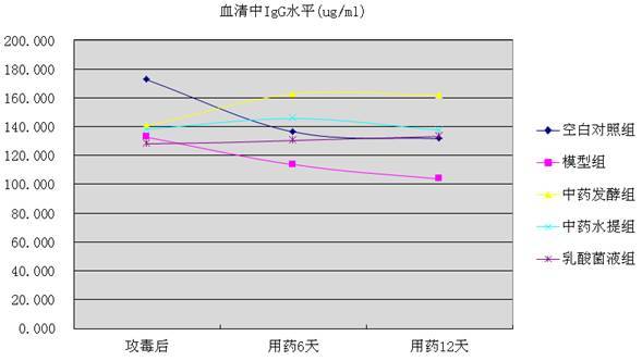 中藥發(fā)酵液、中藥水提液、乳酸菌菌液在攻毒大腸桿菌后,上調(diào)IgG水平,促進(jìn)仔豬體液免疫,中藥發(fā)酵組優(yōu)于純中藥和乳酸菌組。