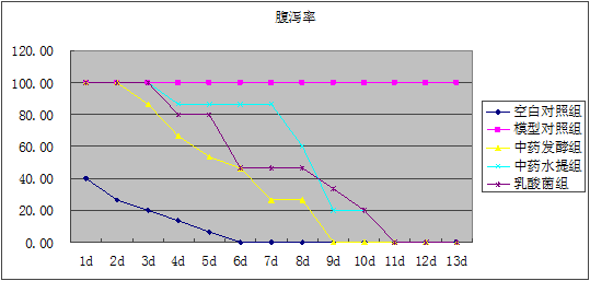 中藥發(fā)酵液能在較短時間內(nèi)降低腹瀉率,縮短病程,讓腹瀉仔豬恢復(fù)正常,效果:中藥發(fā)酵組>乳酸菌組>中藥水提組。