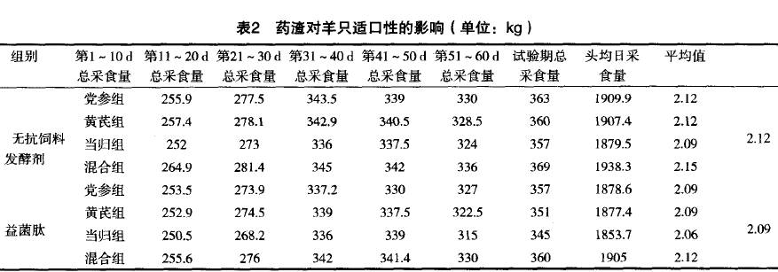2.2藥渣對(duì)羊只適口性的影響(見(jiàn)表2)