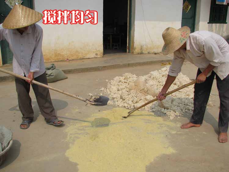 5.另外,發(fā)酵的大宗原料的配料配方完全可以由用戶自己根據(jù)當?shù)氐脑阍Y源情況,自己設(shè)計發(fā)酵的配方,不一定要按照我們資料上所介紹的發(fā)酵配方,非??贪宓卣丈厦娴膩聿僮鳎l(fā)酵劑這個產(chǎn)品其實可以隨意設(shè)計你的發(fā)酵配料,例如,當?shù)赜衅?a style="color: rgb(51, 51, 51); text-decoration: underline; word-wrap: break-word; transition: color 0.2s ease-in-out;" target="_blank">酒糟,又有豆渣,就可以把這兩種原料一起來發(fā)酵,只是注意幾點: 一是配方中要有微生物啟動發(fā)酵需要的少量能量飼料如玉米粉,1~10%都可以,越是臟臭的糟渣用量就多一些,比較好的糟渣如豆渣和啤酒糟,就少用一些;二是注意加點發(fā)酵活化的元素,如磷酸氫鈣,加量為0.2%左右;三是發(fā)酵注意密封好;四是加水量要在60%左右最好,以手捏成團,有水從手指間滴出為度。四是發(fā)酵后,根據(jù)發(fā)酵配料的粗蛋白質(zhì)和能量情況,進行配料喂豬,當然,喂養(yǎng)時的飼料配方就需要你熟悉各種飼料原料的營養(yǎng)含量,動物配方設(shè)計的基本知識等,設(shè)計配方方面可以咨詢服務(wù)部和廠家,或在網(wǎng)站上的論壇和留言本上咨詢,網(wǎng)址是www.syc163.com。