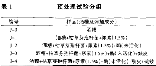 試探性發(fā)酵主要研究枯草芽孢桿菌對氮源的固定作用及其對無機氨源的轉化效率,預測發(fā)酵所能取得的成果,從而制定下一步發(fā)酵實驗方案,并初步探索尿素的添加量,充分發(fā)酵所需的時間范圍, 以及發(fā)酵成熟與否的感官判定等,為正式實驗提供依據。預處理分組情況見表1。
