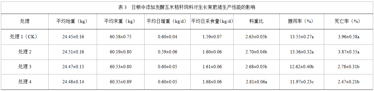 2.2  日糧中添加發(fā)酵玉米秸稈飼料對生長育肥豬生產(chǎn)性能的影響