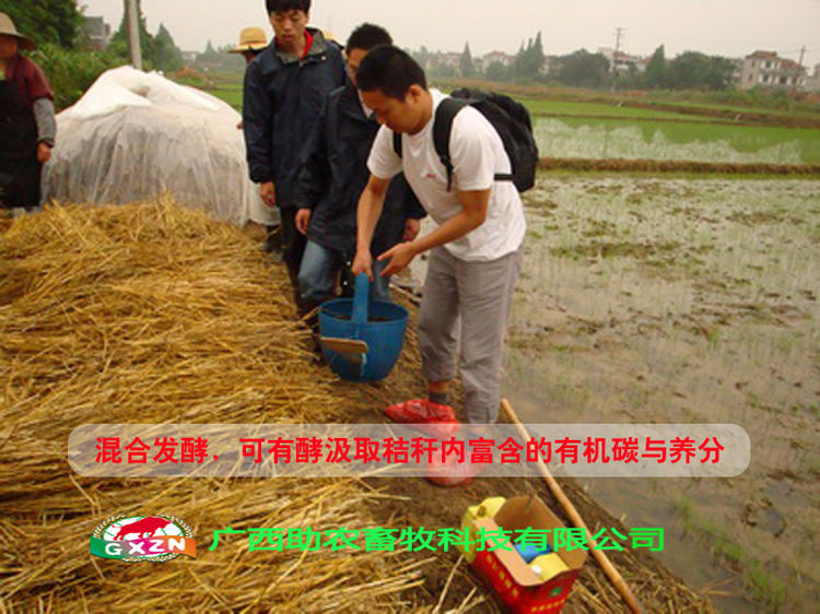 菌種激活:這是發(fā)酵堆肥前必須先進(jìn)行的工作。將本品1包(200克)與3公斤米糠(粉碎秸稈、麥麩均可)、添加0.5公斤紅糖(白糖、糖蜜均可)、溫清水3公斤(改用3公斤稀粥效果更好),制成菌種混合物覆蓋發(fā)酵24小時(shí)備用,我們稱為激活菌種。
