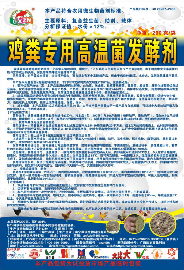 雞糞專(zhuān)用高溫菌發(fā)酵劑,速度是EM菌的2倍以上,比自然發(fā)酵快很多,成為生物菌肥