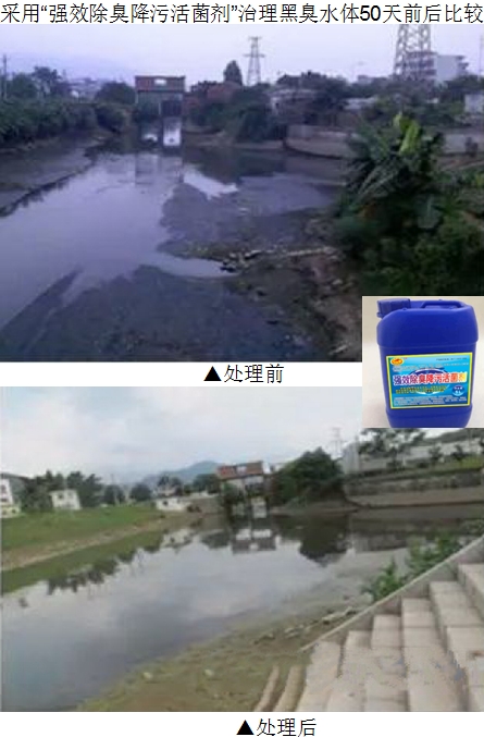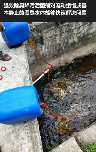 緊急對(duì)污染區(qū)域潑灑“強(qiáng)效除臭降污活菌劑”,開始3天每天1次,根據(jù)不同污染程度每L菌種每次潑灑100-500立方污染水體,3天后每3天1次,一直到15-25天。無(wú)法斷開流入廢水處進(jìn)行滴入菌種。