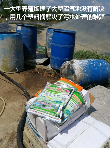 此模式對(duì)在現(xiàn)有沼氣池的養(yǎng)殖場(chǎng)上進(jìn)行運(yùn)用。過(guò)去的沼氣池都是依賴自然微生物進(jìn)行工作,效率低,處理糞污能力微乎其微。本模式僅需在沼氣池前放置一個(gè)塑料桶,將專業(yè)微生物滴入沼氣池出入口前后,沼氣池產(chǎn)氣能力大增,且大部分沼渣自動(dòng)排出,沼液不臭可以直接澆灌作物,處理一立方糞污成不臭、不燒根的沼液成本1元左右。