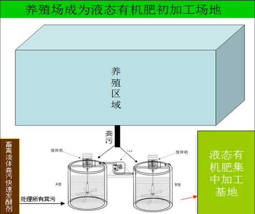 1.養(yǎng)殖場(chǎng)成為液態(tài)有機(jī)肥初加工場(chǎng)地:年出欄1千頭豬只需要2個(gè)50-100立方的池子(三面光),兩個(gè)池交替使用,一個(gè)池滿后加專業(yè)微生物(處理1立方1元左右,也可以長(zhǎng)期自動(dòng)滴入),變成無(wú)臭味的液態(tài)有機(jī)肥。抽運(yùn)到集中處理簡(jiǎn)單發(fā)酵和加工即可成為商品液態(tài)有機(jī)肥。