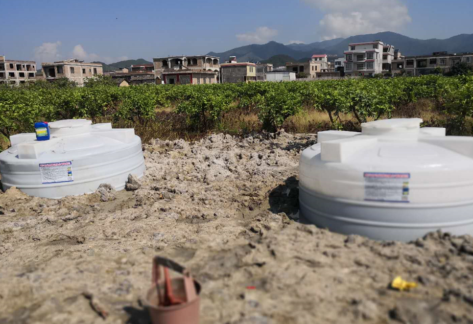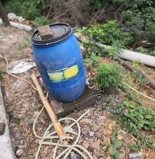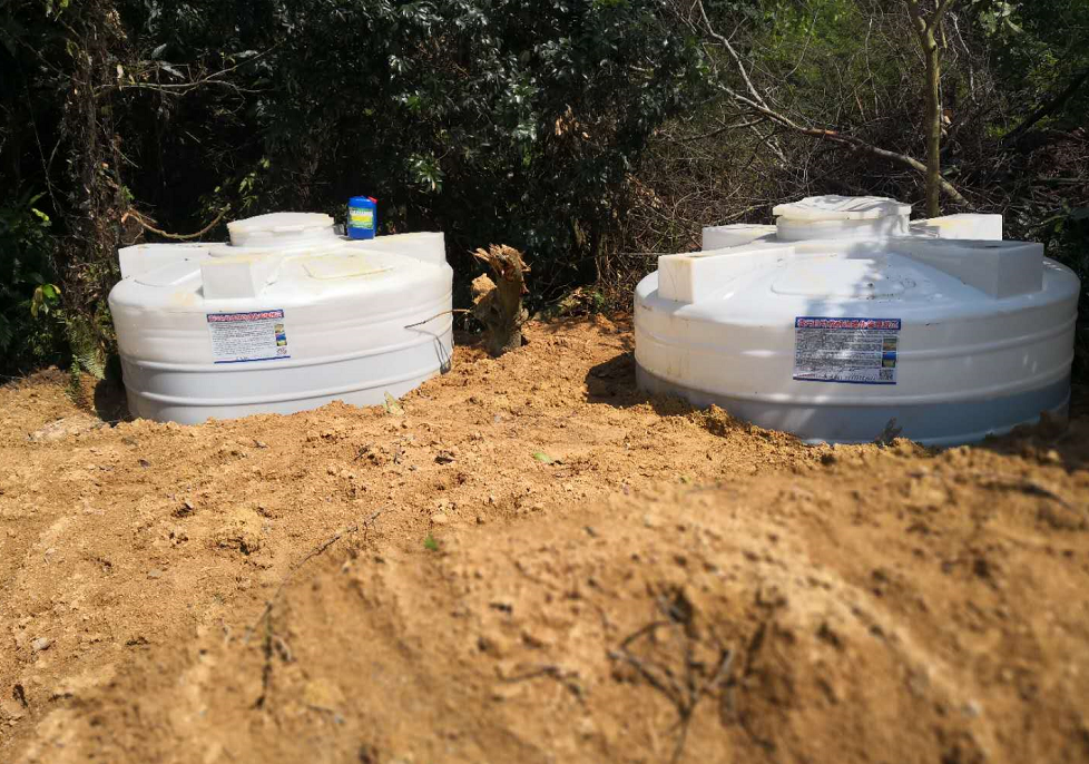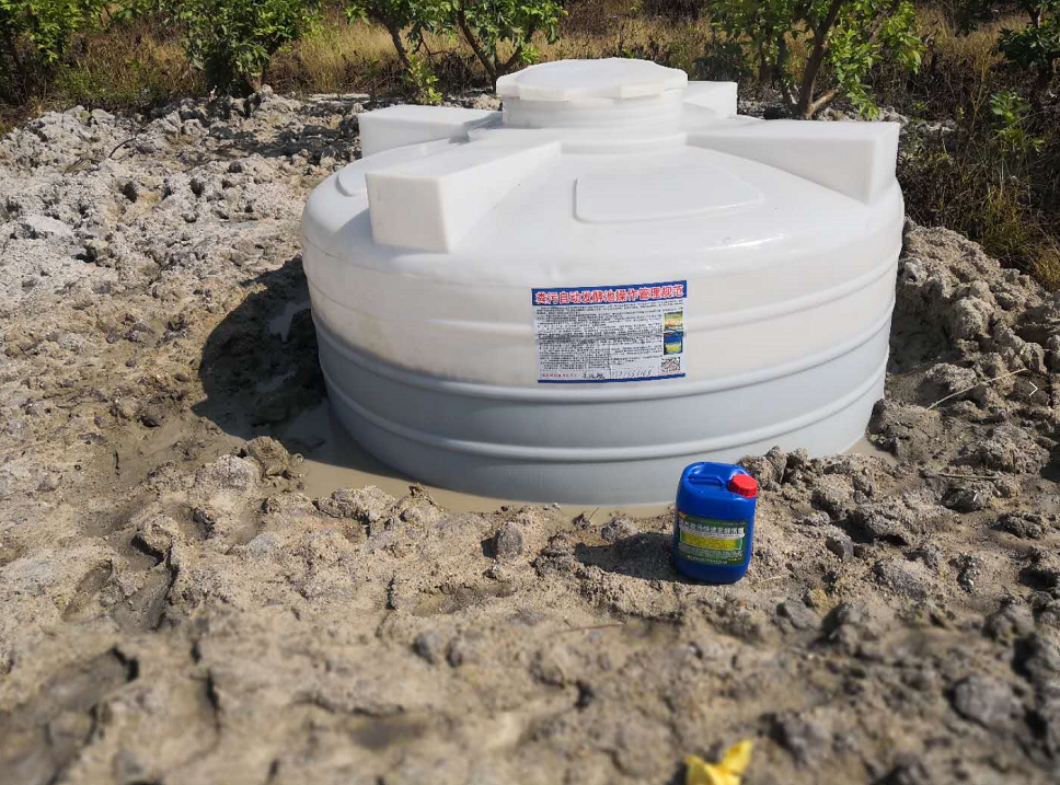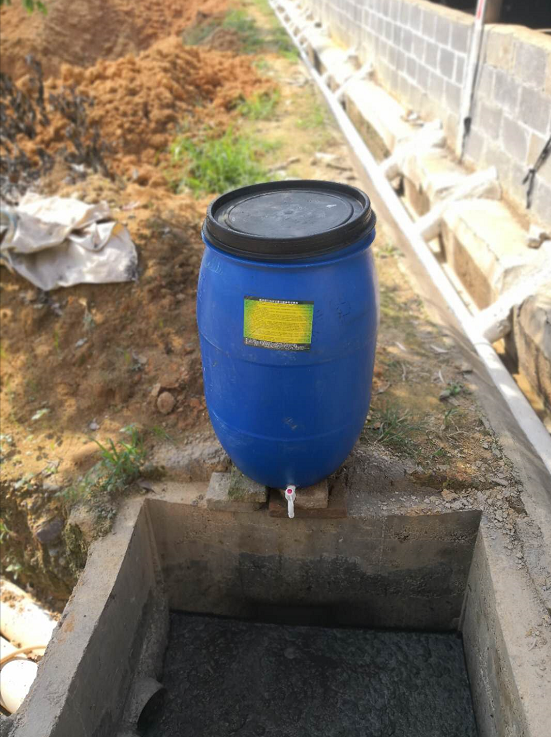 用兩個(gè)大桶(池)在種植基地進(jìn)行處理