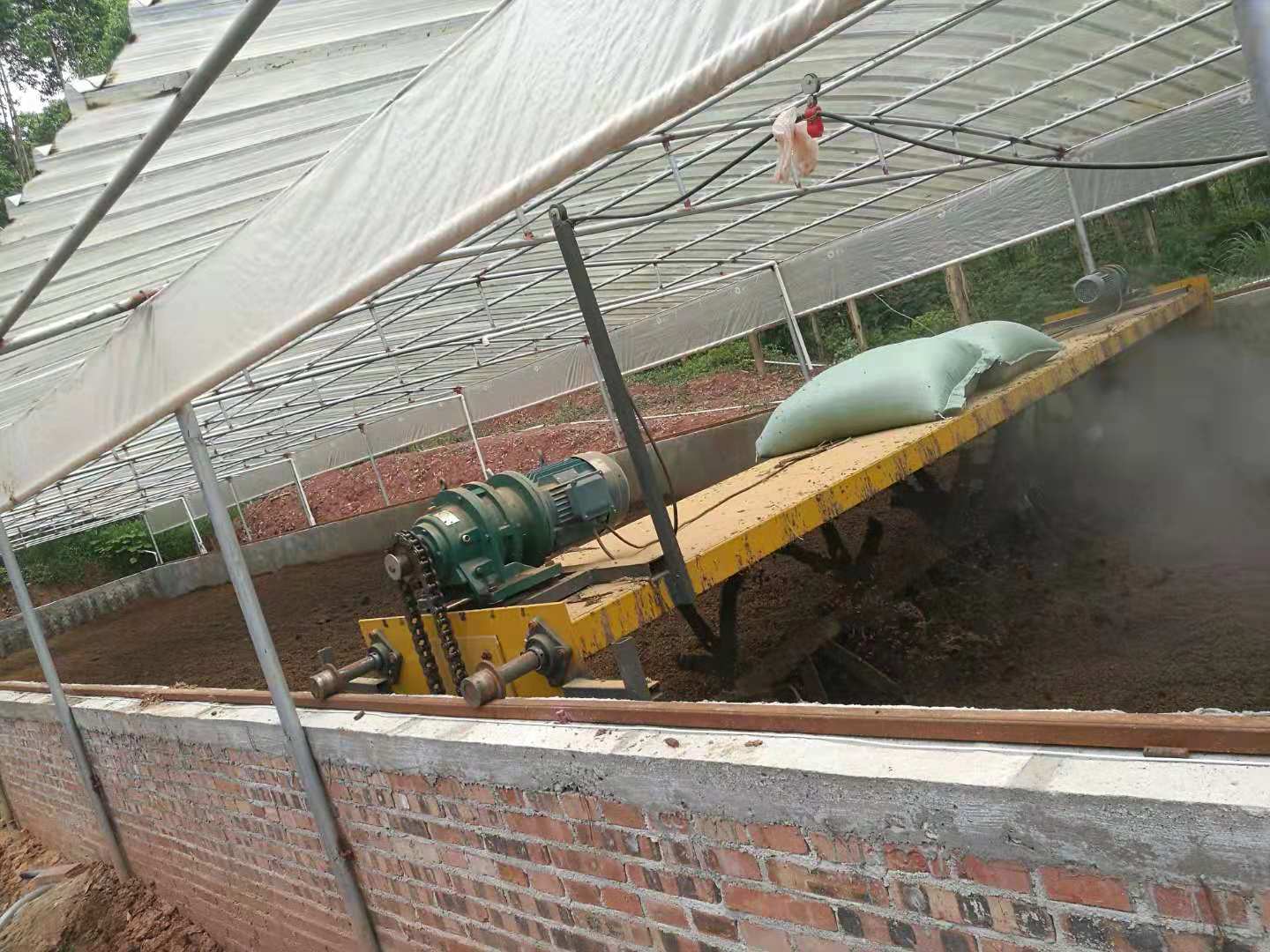 隨后技術(shù)員現(xiàn)場給出了解決方案:1、補(bǔ)充墊料,將墊料加到至少90公分,2、改進(jìn)翻耙機(jī),使其翻扒深度達(dá)到60公分,3、使用更加專業(yè)的菌種異位發(fā)酵床專用復(fù)合菌。