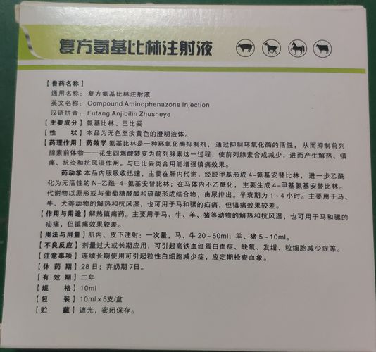 復方氨基比林注射液,用于馬、牛、羊、豬等動物胡解熱和抗風濕,也可用于馬和騾的疝痛。山西兆益