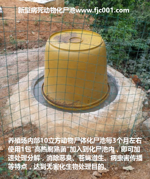 ②養(yǎng)殖場病死動物化尸池上的使用:每10立方的化尸池每個月添加本品一包激活菌種直接倒入化尸池中即可,可以加速化尸、消除惡臭、有效防止病原傳播等作用。如果是使用填埋病死動物,將激活菌液撒在病死動物上再覆土即可。
