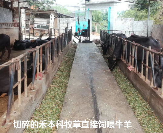 在每年的盛產(chǎn)期間,將禾本科牧草如新型皇竹草、糖蔗3號(hào)牧草等收割后采用鍘草機(jī)切碎,進(jìn)行青貯后飼喂牛羊,因禾本科牧草特別是糖蔗3號(hào)牧草營(yíng)養(yǎng)高,與甘蔗尾葉相當(dāng),遠(yuǎn)高于象草、巨菌草、玉米秸稈等。操作步驟如下:
