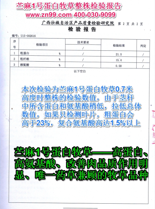 年產(chǎn)量高,種植第二年嫩莖葉畝產(chǎn)約16噸,干料粗蛋白23%左右,粗纖維17% 左右,鈣含量4.2% 左右,粗脂肪 2.3% 左右,維生素 B2 含量(mg/kg)14% 左右,賴氨酸含量高達(dá) 1.2% 左右,最高超 1.5%,是名副其實(shí)的高賴氨酸植物蛋白質(zhì)飼料。經(jīng)豬等經(jīng)濟(jì)動(dòng)物飼養(yǎng)對(duì)比試驗(yàn),經(jīng)濟(jì)效益提升顯著。