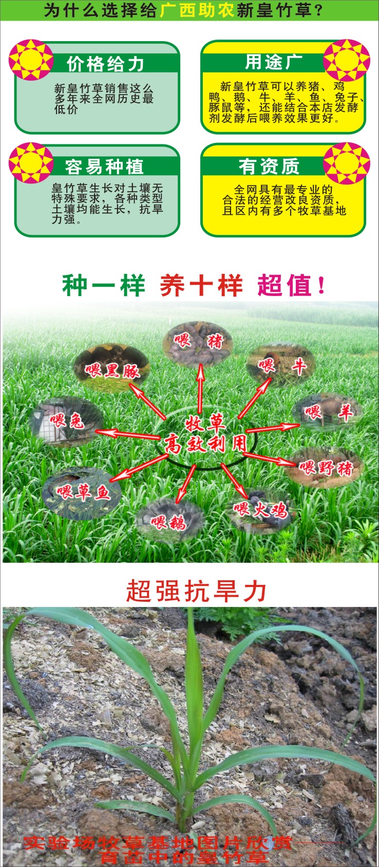 (1)皇竹草葉柔軟多汁,口感好。是各種草食性牲畜和魚類的極佳飼料。