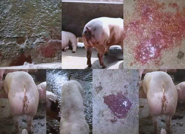 3)有的病豬可見皮膚蒼白和稍稀的糞便,這是貧血和腸道出血的癥狀,其特征為黑紅色的糞便。