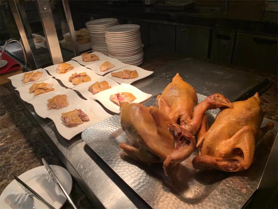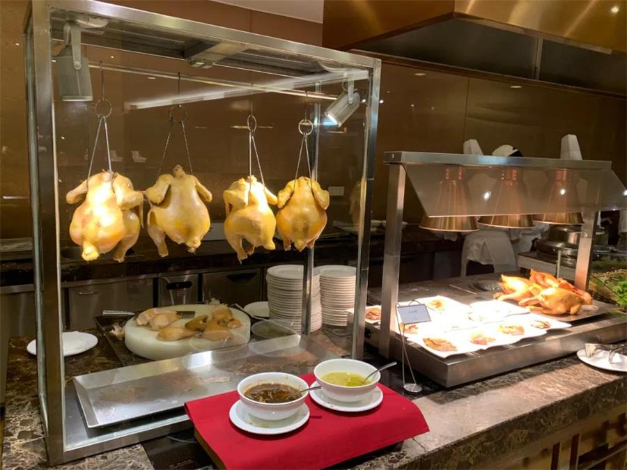 在北京全國兩會廣西代表團駐地里后廚里,懸掛著一只只油黃、肉白、皮爽的七百弄雞,隨處散發(fā)著清淡鮮美的香味。餐桌上醒目的“鹽焗七百弄香雞”菜品中很受代表委員的青睞,不少全國人大代表品嘗七百弄雞后贊譽有加。