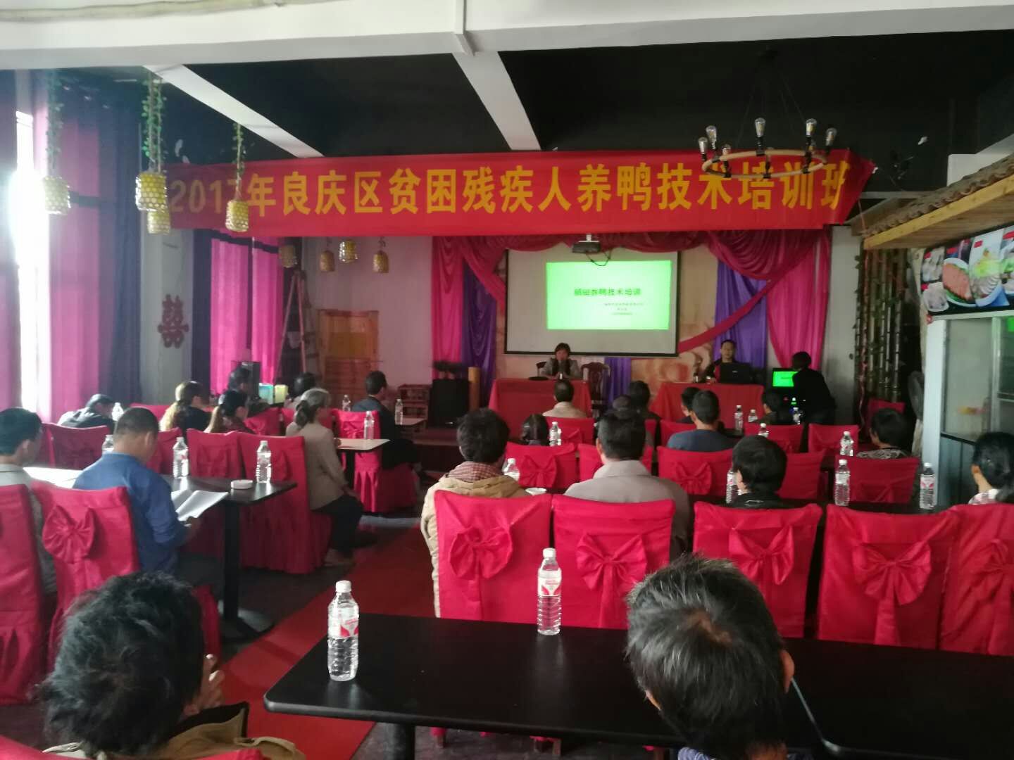 2017118日,天空晴朗陽(yáng)光明媚。南寧市良慶區(qū)大塘鎮(zhèn)四十多名殘疾貧困農(nóng)民興高采烈一早就來(lái)到大塘鎮(zhèn)鳳亭湖酒家,參加由良慶區(qū)殘聯(lián)開展,廣西禾苗生態(tài)農(nóng)業(yè)發(fā)展有限公司贊助,廣西助農(nóng)畜牧科技有限公司參與的養(yǎng)殖培訓(xùn)。這次培訓(xùn)主要教會(huì)養(yǎng)殖戶如何利用種植水稻和養(yǎng)殖雜交鴨結(jié)合起來(lái),真正達(dá)到稻田養(yǎng)鴨和生態(tài)養(yǎng)殖新模式。這次培訓(xùn)后殘疾人養(yǎng)殖戶對(duì)新的養(yǎng)鴨模式有了一定的了解,改變傳統(tǒng)的養(yǎng)鴨模式。會(huì)后區(qū)殘聯(lián)還給每個(gè)養(yǎng)殖戶免費(fèi)發(fā)放了鴨苗和飼料,希望通過(guò)這次培訓(xùn)會(huì)議和贈(zèng)送活動(dòng)讓殘疾貧困農(nóng)民能夠自食其力,有所作為。