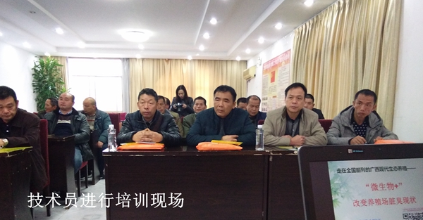 20171228日上午,河池市金城江區(qū)水產(chǎn)畜牧獸醫(yī)局邀請(qǐng)廣西助農(nóng)畜牧科技有限公司技術(shù)員培訓(xùn)本地區(qū)有規(guī)模的養(yǎng)殖戶了解現(xiàn)代生態(tài)養(yǎng)殖關(guān)于“微生物+”的正確運(yùn)用,已經(jīng)確定大面積普及推廣使用現(xiàn)代“微生物+”技術(shù)模式。