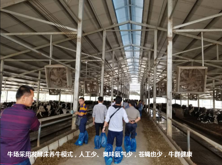 隨后到廣西農(nóng)墾西江乳業(yè)有限公司奶牛場(chǎng)進(jìn)行參觀,這個(gè)奶牛場(chǎng)全部采用發(fā)酵床養(yǎng)殖模式,牛群干凈健康,接待的經(jīng)理介紹,使用發(fā)酵床生態(tài)養(yǎng)殖模式結(jié)合飼料中微生物技術(shù),奶牛常見(jiàn)的三種牛病減少了80%以上,產(chǎn)奶量從過(guò)年年產(chǎn)6噸提高到現(xiàn)在的8.2噸。