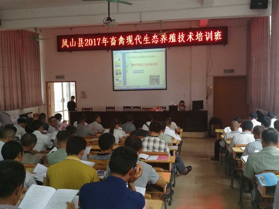 河池市鳳山縣舉辦2017年現(xiàn)代生態(tài)養(yǎng)殖技術(shù)培訓(xùn)班,特邀廣西助農(nóng)公司技術(shù)員進(jìn)行培訓(xùn)和養(yǎng)殖場(chǎng)進(jìn)行服務(wù)
