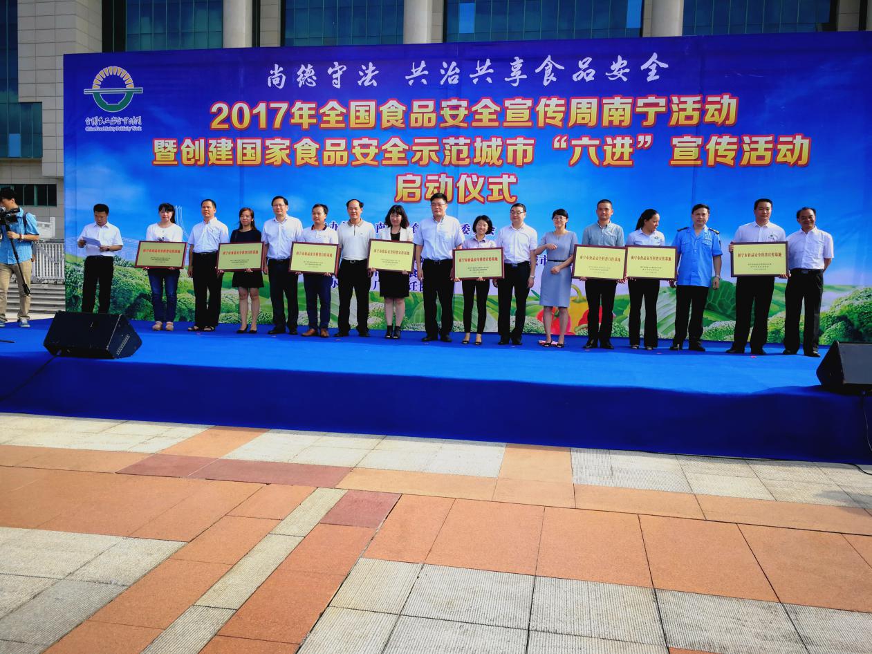 2017年6月29日早上8點廣西助農(nóng)公司代表參加了2017年全國食品安全宣傳周南寧活動暨創(chuàng)建國家食品安全示范城市“六進”宣傳活動啟動儀式。