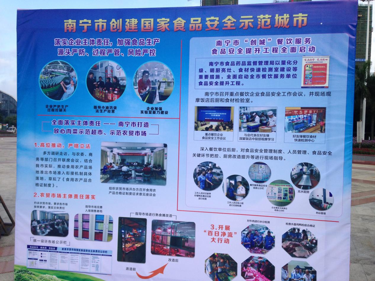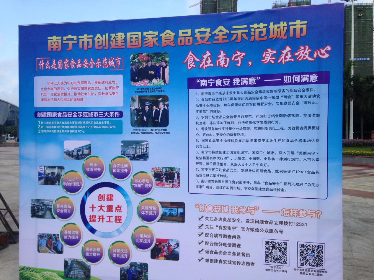 確保食品安全是民生、民心工程,黨和政府一直高度重視。南寧市4家班子分管領(lǐng)導(dǎo)、南寧市人民政府副市長、食安委成員單位:市公安局、市工信委、市農(nóng)委、市教育局、市商務(wù)局、市衛(wèi)計委、市食品藥品監(jiān)管局、市糧食局、市工商局、市質(zhì)監(jiān)局、市政府新聞辦、市林園局、南寧鹽務(wù)管理局、南寧市出入境檢驗檢疫局領(lǐng)導(dǎo)及新聞媒體朋友出席了今天的啟動儀式,市食品安全監(jiān)管部門執(zhí)法工作人員、食品企業(yè)代表等近千人現(xiàn)場參加了活動。