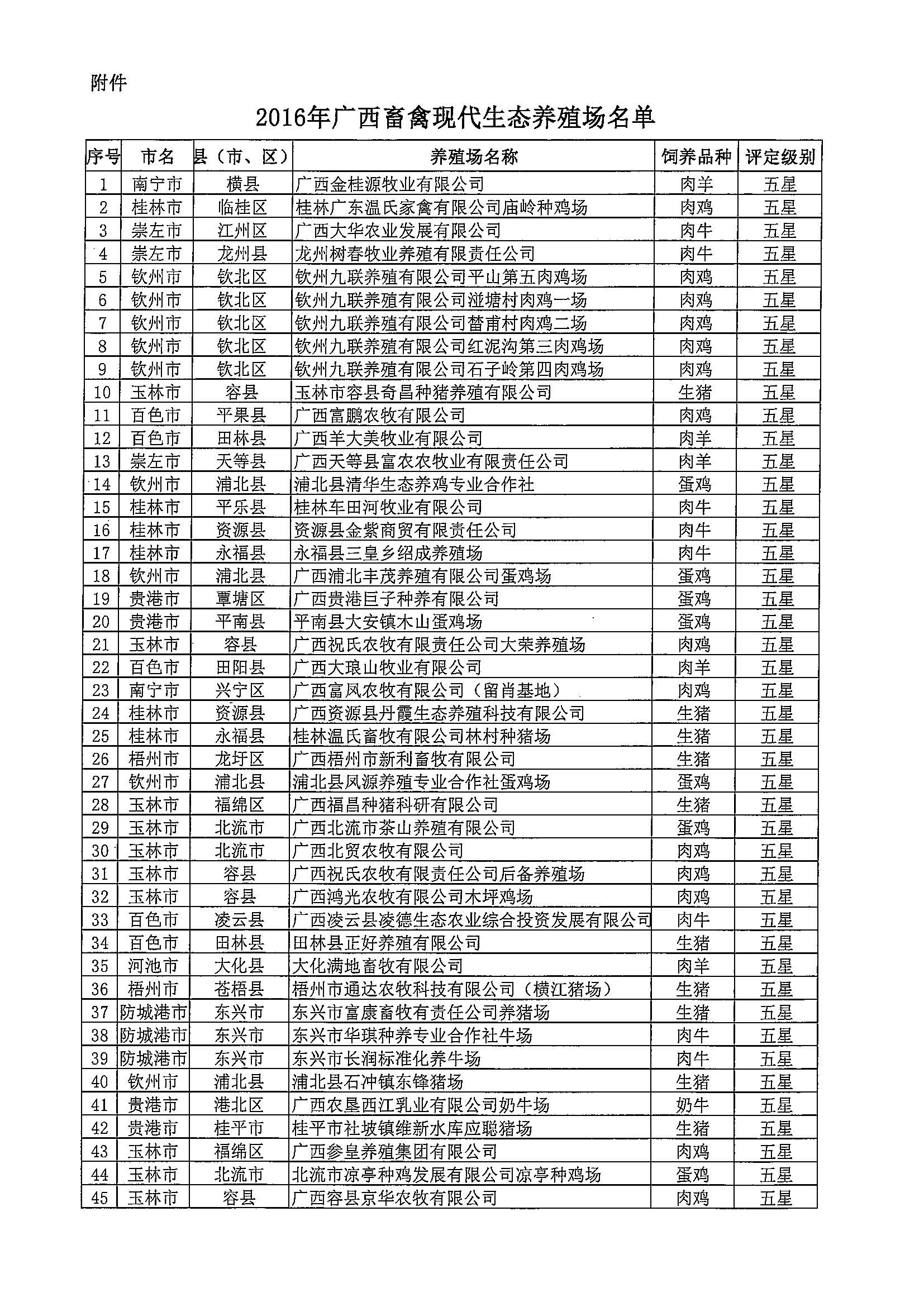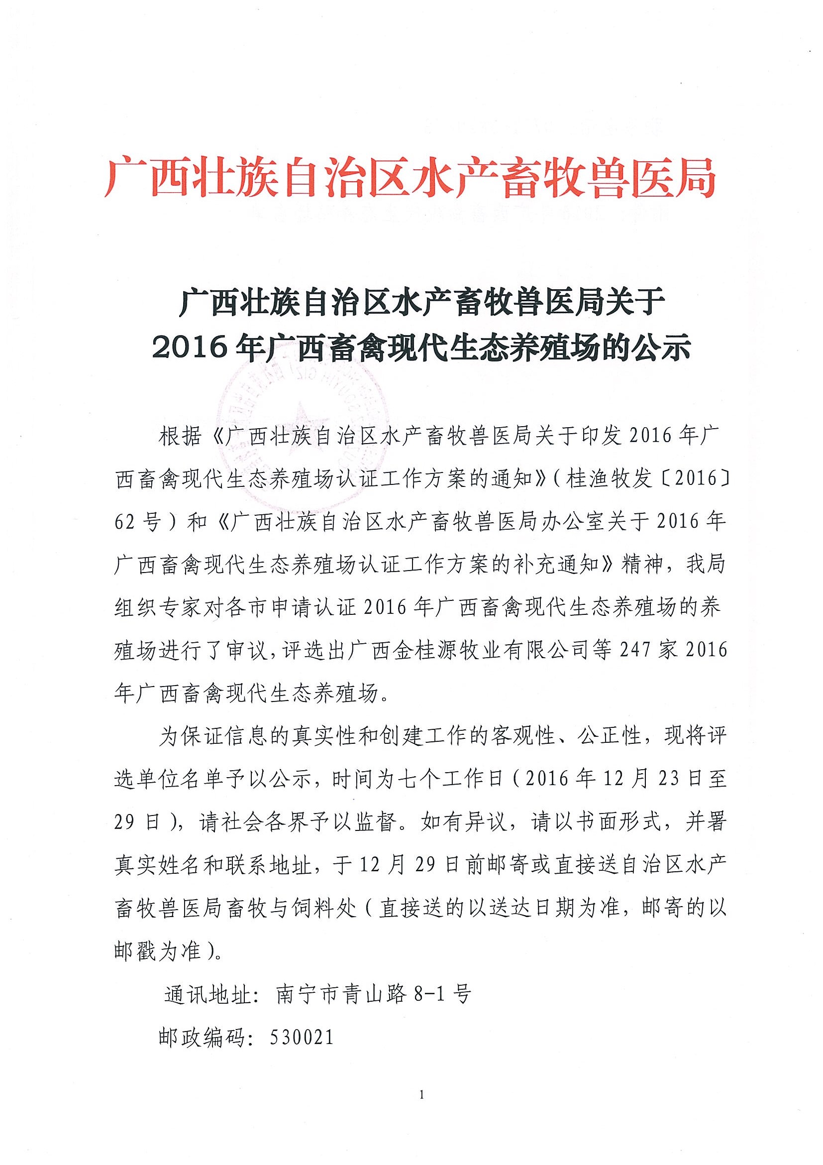 關(guān)于2016年廣西畜禽現(xiàn)代生態(tài)養(yǎng)殖場(chǎng)的公示