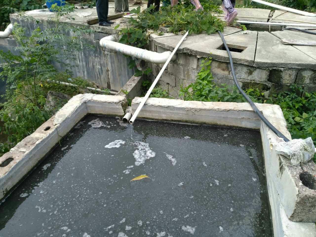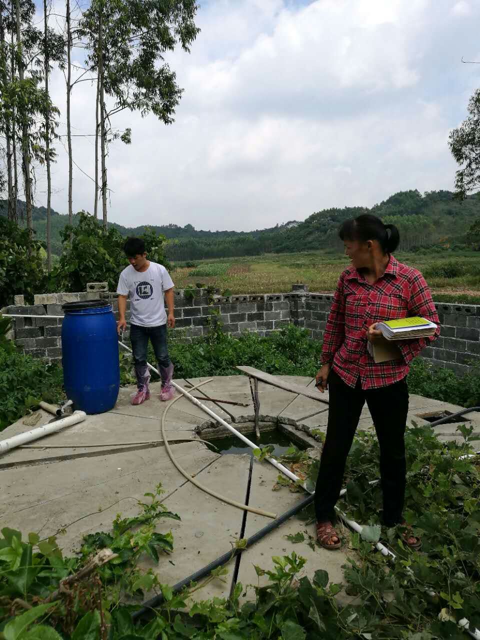 助農(nóng)公司工作人員在指導(dǎo)養(yǎng)殖戶使用益生菌進行糞便和污水的處理