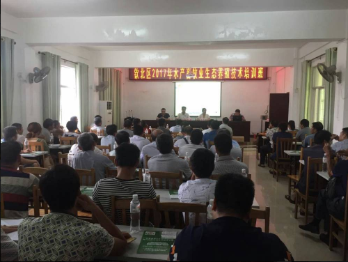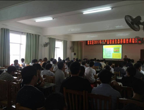 2017年6月23日,欽州市欽北區(qū)舉辦2017年現(xiàn)代生態(tài)養(yǎng)殖技術(shù)培訓(xùn)班,本區(qū)域幾乎所有規(guī)模養(yǎng)殖場負(fù)責(zé)人全部參加了培訓(xùn)。