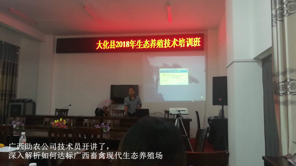 大化縣表彰去年通過現(xiàn)代態(tài)養(yǎng)殖場(chǎng)認(rèn)證的場(chǎng)主,邀請(qǐng)廣西助農(nóng)公司技術(shù)員做養(yǎng)殖場(chǎng)環(huán)保與糞污資源化問題解析培訓(xùn)