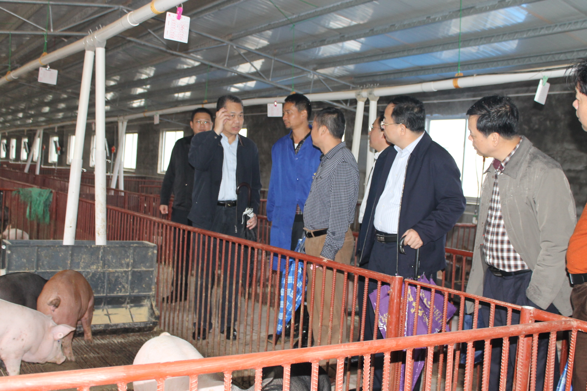 與會領(lǐng)導(dǎo)正在參觀興業(yè)縣溫氏公司生豬集中養(yǎng)殖示范點