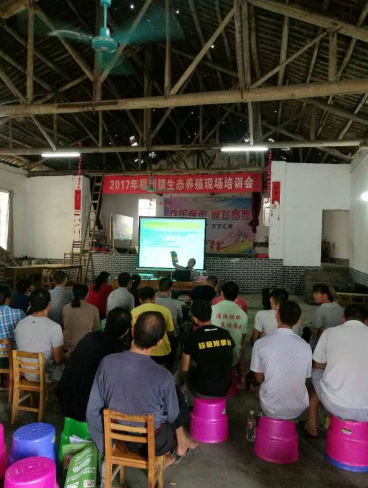 兩個(gè)多月前,我們?cè)谠摯宓牡牟糠逐B(yǎng)殖場(chǎng)進(jìn)行了試點(diǎn),良好的效果引起了福利鎮(zhèn)獸醫(yī)站及陽(yáng)朔縣畜牧局的注意,村里的其他養(yǎng)殖場(chǎng)也非??释麑?shí)施,在2017年6月22日特別邀請(qǐng)廣西助農(nóng)畜牧科技有限公司的技術(shù)員在該村進(jìn)行了一場(chǎng)特別的生態(tài)養(yǎng)殖培訓(xùn)班,達(dá)到了非常好的效果。大家紛紛邀請(qǐng)技術(shù)員到自己的養(yǎng)殖場(chǎng)進(jìn)行指導(dǎo)。