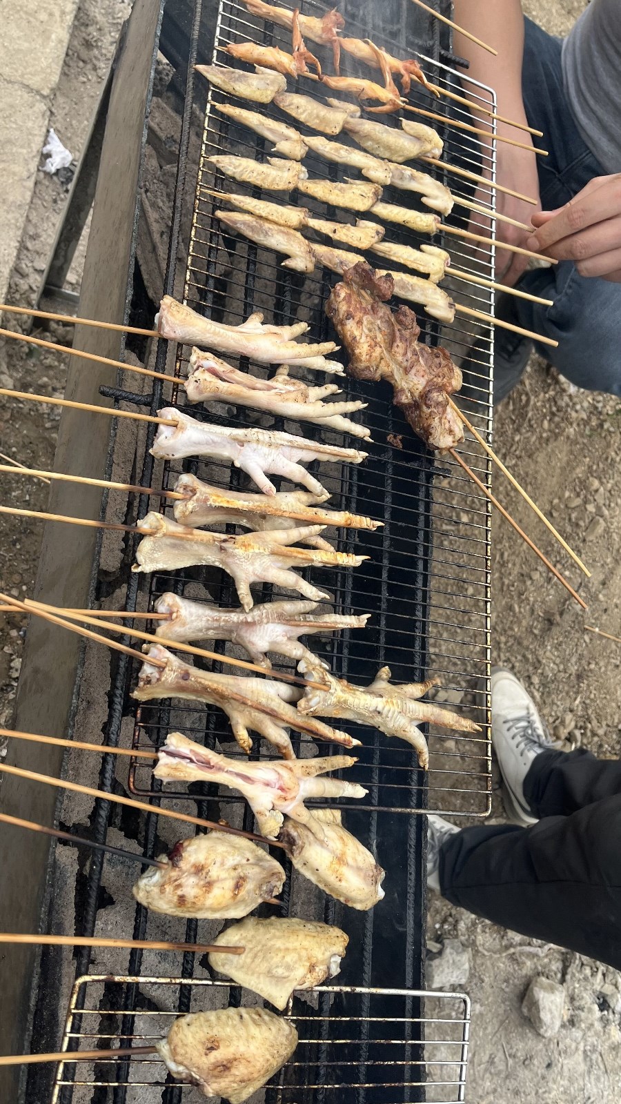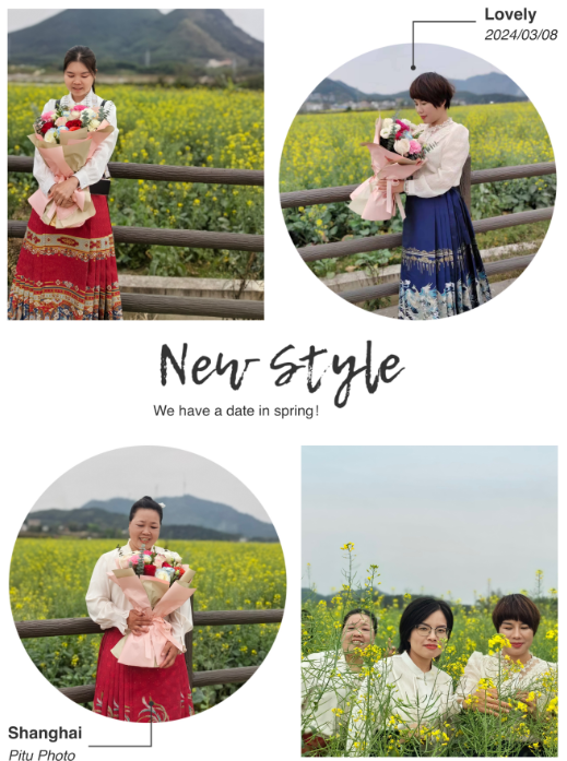 基地為女職工們準(zhǔn)備了一頭現(xiàn)殺的豬和一頭現(xiàn)殺的羊,以及新鮮的雞和蛋?;氐哪型聜兗娂妿兔η腥狻⒋?、生火燒炭等準(zhǔn)備工作,給女同事們品嘗土豬土雞等美味。女同事們只要打扮得美美地等著享受美食、游戲娛樂。下午女神們穿著美美的馬面裙游覽千畝油菜花地,留下美好的回憶。