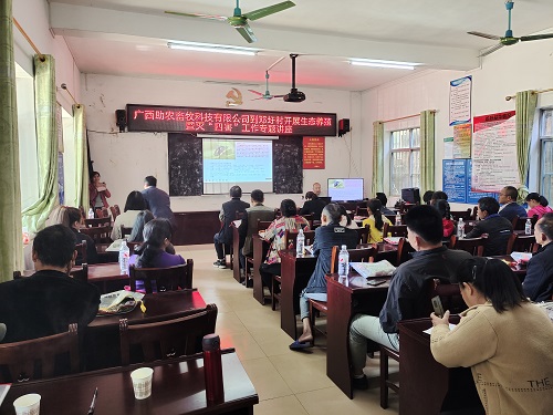 廣西助農(nóng)技術(shù)員為養(yǎng)殖戶們進行了養(yǎng)鴨場除臭與“除四害”的技術(shù)講座。除對養(yǎng)鴨場臭味與“四害”會造成的影響進行深入剖析外,還針對養(yǎng)鴨場臭味與“四害”各自的特點進行了詳細講解,教會養(yǎng)殖戶們對消除臭味與”四害“行有效的防治方法。會后助農(nóng)公司為村里的每一個養(yǎng)殖戶贈送了價值約一百元“除四害”產(chǎn)品和除臭益生菌產(chǎn)品,助力村里養(yǎng)殖戶們的養(yǎng)殖生產(chǎn)。
