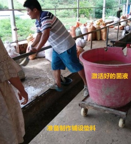 1.首先激活發(fā)酵床菌種:將1包“加強(qiáng)型活力發(fā)酵床復(fù)合菌種”500g全部溶于20公斤35度溫水中密封激活48小時后。(激活菌種)