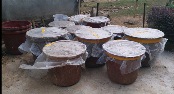 3、加水拌勻后隨即裝入盆、缸、池、塑料袋等容器中,在自然氣溫下密封發(fā)酵3-7天,等有香、甜、酒氣時(shí)即可飼喂。大規(guī)模發(fā)酵時(shí)可直接堆放在干凈的水泥地板或發(fā)酵池中,加蓋塑料薄膜密封發(fā)酵即可。