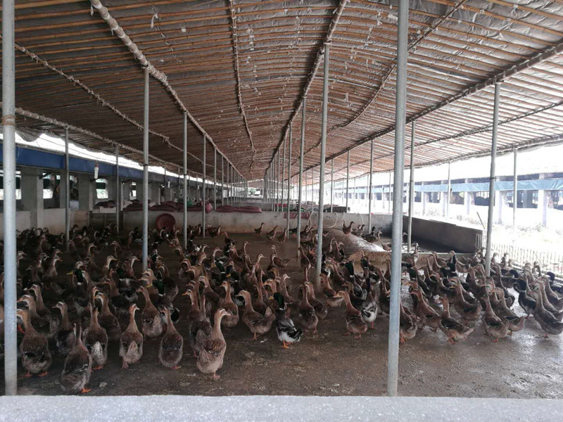 在存欄量少的鴨場(chǎng),因?yàn)轼喿由厦媛┫聛?lái)的水也較多,每天產(chǎn)生的鴨糞也達(dá)到好幾方水,由于地方限制,無(wú)法做到配套劑合的污水處理設(shè)施。公司技術(shù)員也給出了比較可行的技術(shù)方案,把飲水器改造一下,做到清污分流,這樣就可以減少70%以上的污水,然后再做一個(gè)異位發(fā)酵床,用理處理刮出來(lái)的鴨糞,這樣糞污就可以達(dá)到完合的零排放了。再使用專(zhuān)用的益生菌消毒和飼料中添加益生菌,使糞便無(wú)臭無(wú)異味,不影響周邊的環(huán)境。還可以增加鴨群的健康程度,即達(dá)到了環(huán)保要求又提高了經(jīng)濟(jì)效益。