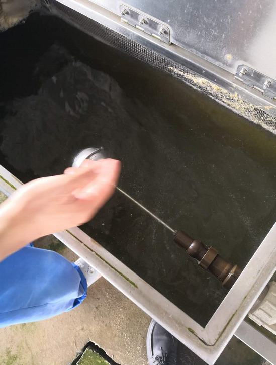 該孵化場每日產(chǎn)生的糞便量并不多,但是需要沖洗雞籠,雞籠中攜帶有雞糞便,所以每天有大量的污水產(chǎn)生,由于場區(qū)內(nèi)沒有儲存污水地方和處理污水的設備,直接排放環(huán)??隙ú贿^關,助農(nóng)技術員推薦采用“強效除臭降污活菌劑進行治理。