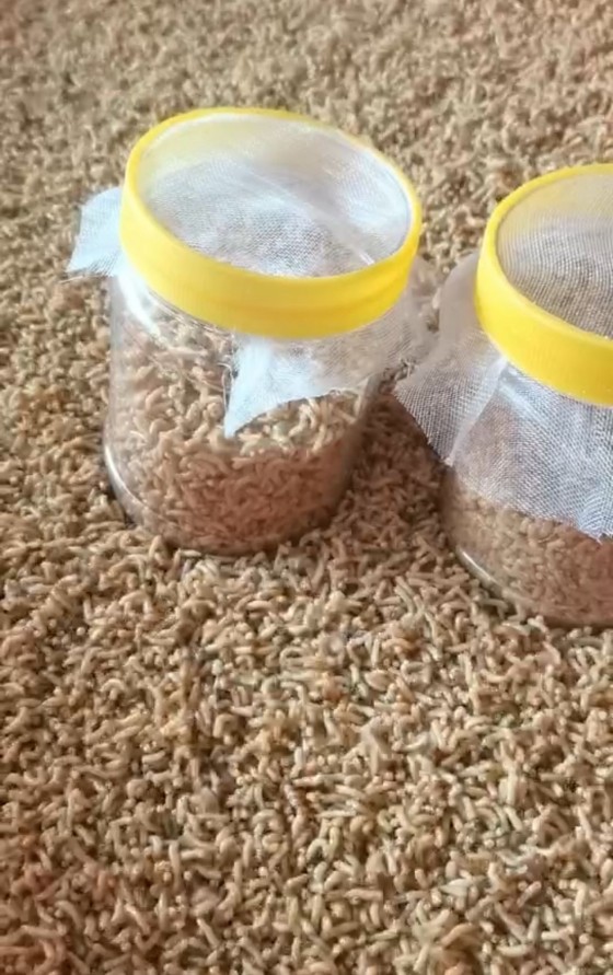 廖老板養(yǎng)殖蠅蛆主要利用處理過后的廚余來喂養(yǎng),用活力99拌料喂,一包拌1000斤料。也可以用鮮雞糞或豬糞50%~60%,麩皮35%~45%,粗糠5%,三料均勻混合后,配成含水量65%左右的養(yǎng)育料,然后使用用“活力99生效劑”發(fā)酵1周后使用。使用動物糞便養(yǎng)殖蠅蛆一定要發(fā)酵后使用,否則,生產(chǎn)出的蛆蟲,會含有各類病菌,不利于做為飼料食用