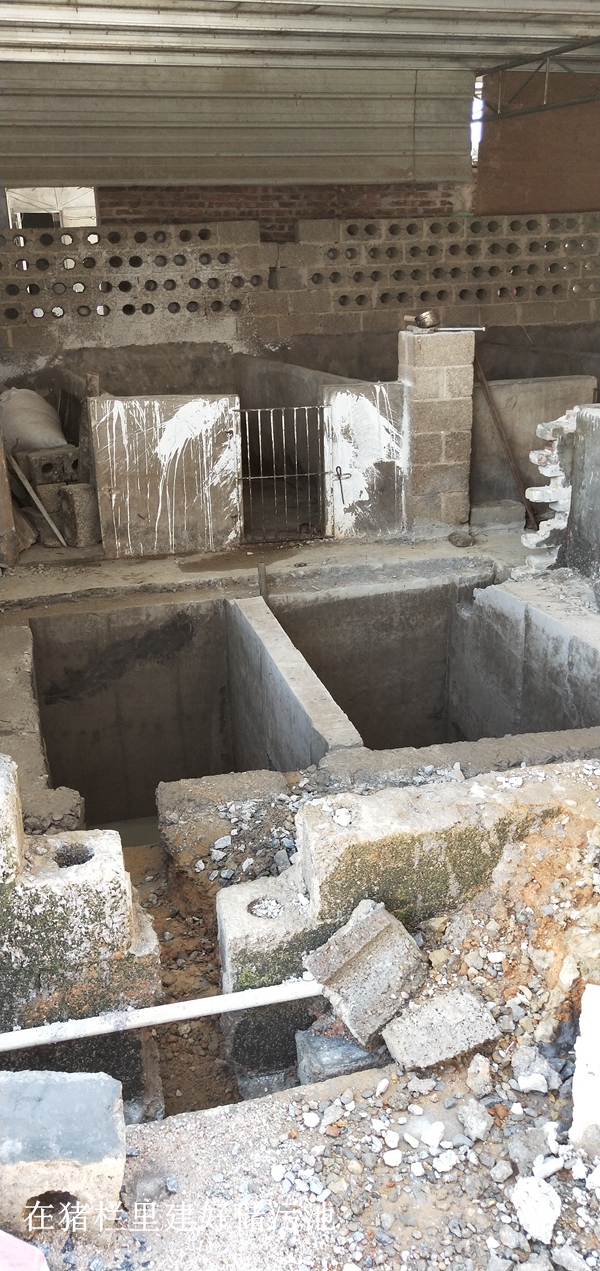 建設(shè)沼氣池是很好的辦法,當水滿排出時還要配備有儲液池,沼氣池和儲液池“三面光”,用水泥抹面或鋪上防滲膜可以防止池水滲入地下影響暗河水質(zhì)。如果儲液池建于舍外,使用透明膜全池覆蓋,即可以防雨水落入又可多光照增溫利于污水中菌種發(fā)酵。