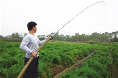 記者在福綿區(qū)樟木鎮(zhèn)看到,綠保專業(yè)合作社一輛沼液肥收運車正將從附近養(yǎng)殖戶抽取的沼液肥噴施到中藥材天冬種植地塊。
