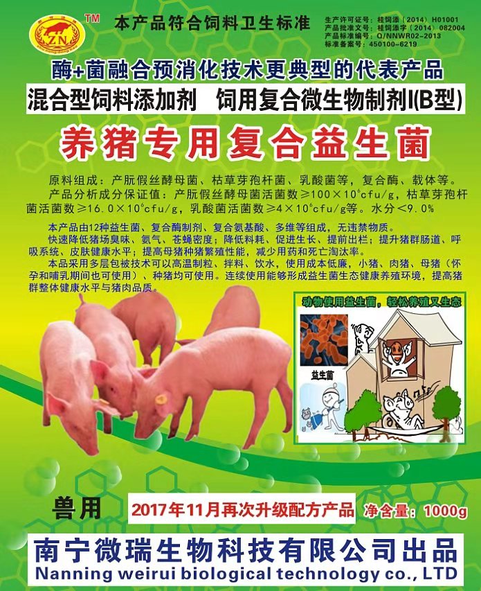 養(yǎng)殖場內使用益生菌進行拌料飼喂,使用后7天,欄舍內氨氣明顯減少,因為氨氣引起的各種疾病基本沒有了,用藥也減少了很多。每天喂的飼料沒什么變化,但是豬糞比沒飼喂之前少了很多,豬的吸收好了長肉快,同時豬糞少了處理起來更省成本。