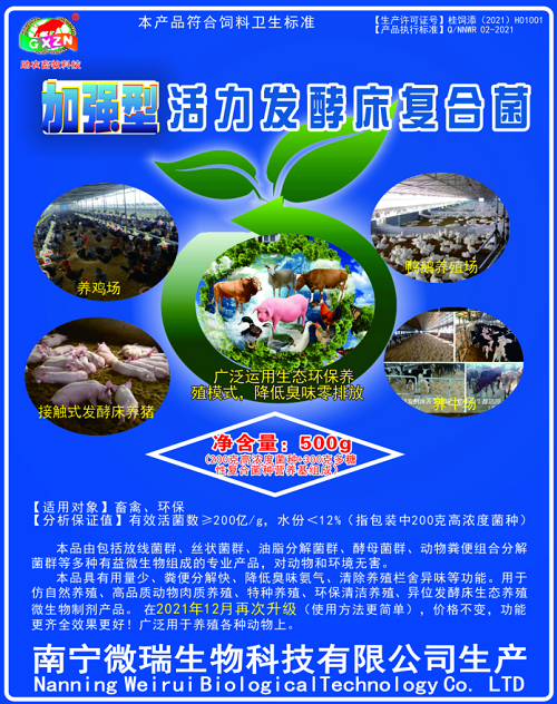 先將加強(qiáng)型活力發(fā)酵床復(fù)合菌包裝中的200克粉劑(高濃度菌種)與300克多糖性復(fù)合菌種營(yíng)養(yǎng)基放入20公斤約35℃的溫水中,在塑料容器中激活24小時(shí)以上,我們稱之為激活菌液,密封保存并且推薦是15天內(nèi)用完,備用;墊料采用無(wú)霉變鋸末可以直接使用,如果使用谷殼或速生桉樹(shù)等有一定毒素的鋸末作為墊料需要發(fā)酵一周以上再使用(本品1包激活菌種、玉米粉20公斤或多糖性復(fù)合菌種營(yíng)養(yǎng)基750克以上、墊料2立方,調(diào)制到含水量55%左右壓實(shí)薄膜覆蓋發(fā)酵7-15天后使用)。
