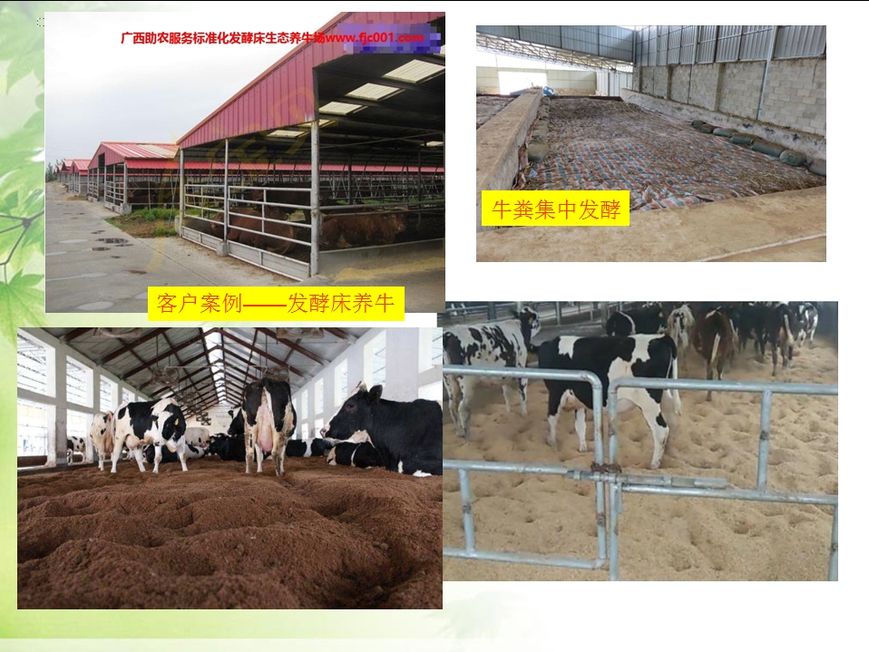 1.采用高架網(wǎng)床或者發(fā)酵墊料式進(jìn)行。高架網(wǎng)床參考高架網(wǎng)床養(yǎng)豬模式,只是在建筑材料上要確保牛的承重力;目前最簡單有效的就是發(fā)酵床墊料養(yǎng)牛,發(fā)酵墊料要求墊料為15-30厘米,接種專業(yè)的發(fā)酵床墊料菌種(如“加強(qiáng)型活力發(fā)酵床復(fù)合菌”),墊料選擇鋸末等材料。發(fā)酵床墊料的牛糞需要人工鏟出另外場(chǎng)外覆蓋及時(shí)使用專業(yè)微生物發(fā)酵劑發(fā)酵(如“加強(qiáng)型堆肥快速腐熟劑”,快速產(chǎn)生超過70℃的溫度進(jìn)行發(fā)酵,蒸發(fā)大量水分,一周左右就完成發(fā)酵,比自然發(fā)酵速度快3倍以上)。墊料需要選擇區(qū)域進(jìn)行人工翻耙,一般是將過濕的地方墊料鏟往干墊料區(qū)進(jìn)行兌換。
